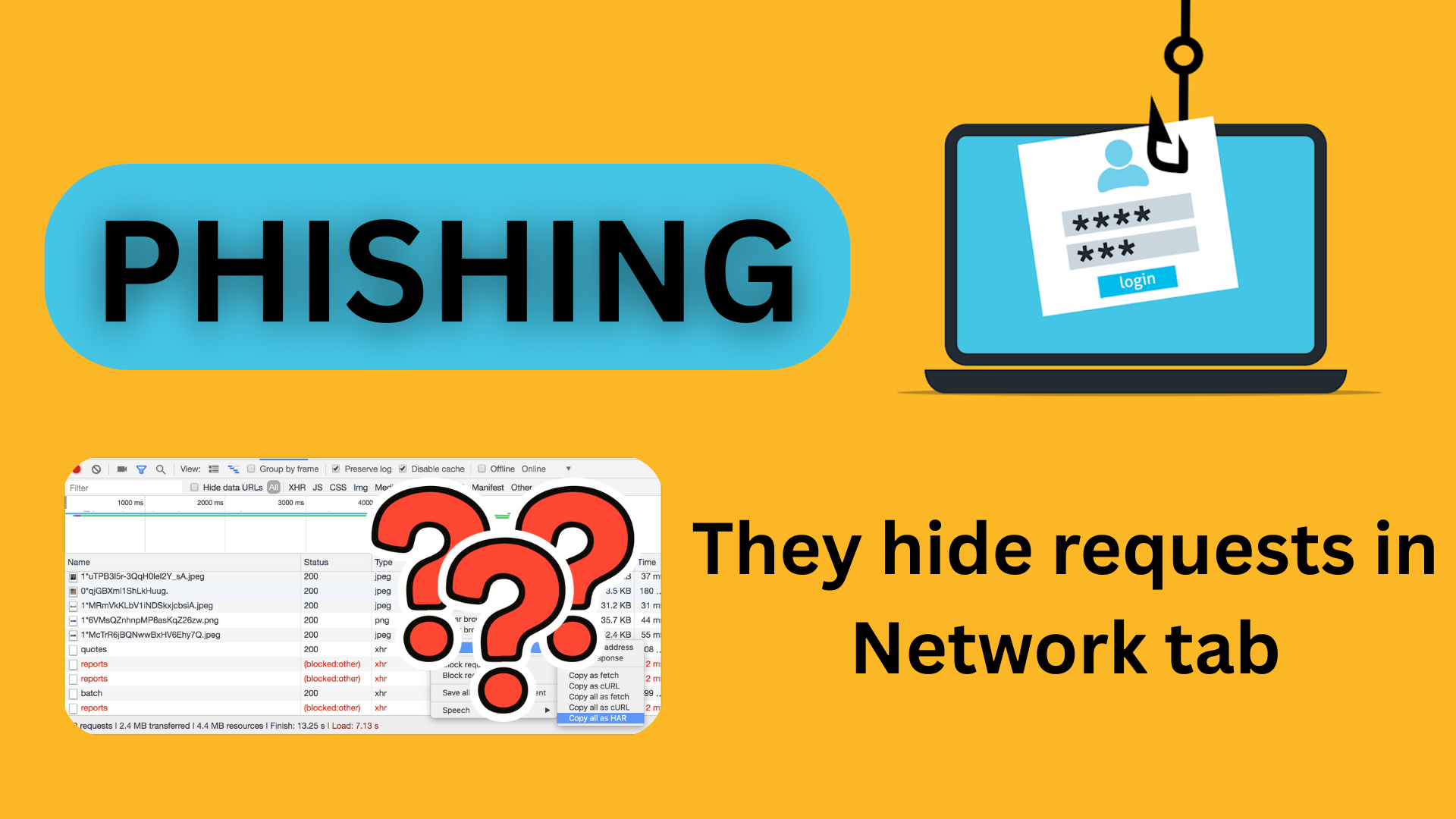 To summarize: it is actually possible to hide a request from the Network tab using a WebWorker, so sometimes you won’t even see what happened or how your data ended up in a hacker’s hands.